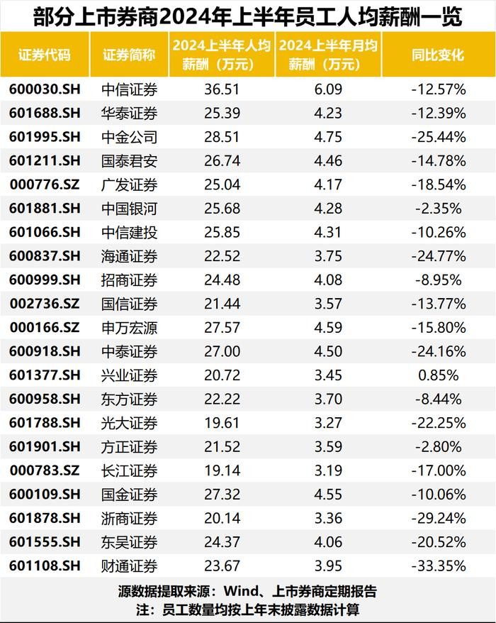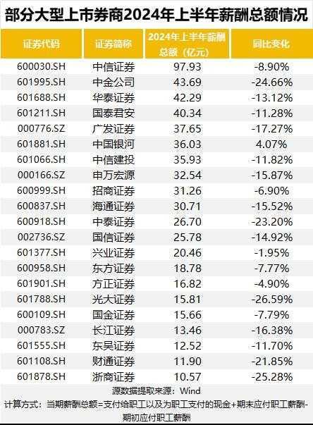 随着A股2024年中报季的落幕,上市券商上半年薪酬情况也随之浮出水面。